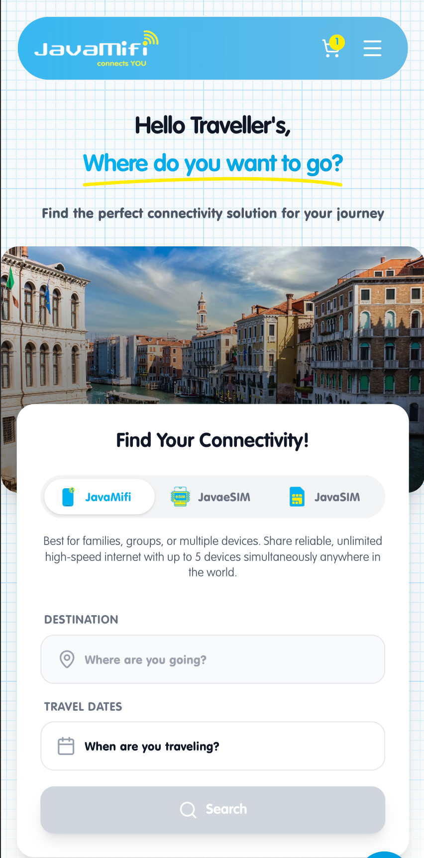 Open your browser and navigate to javamifi.com. Browse our comprehensive eSIM solutions designed for global travelers.